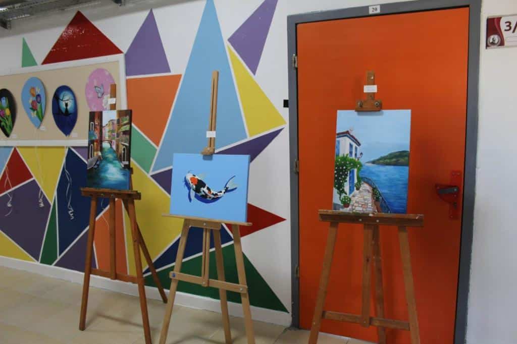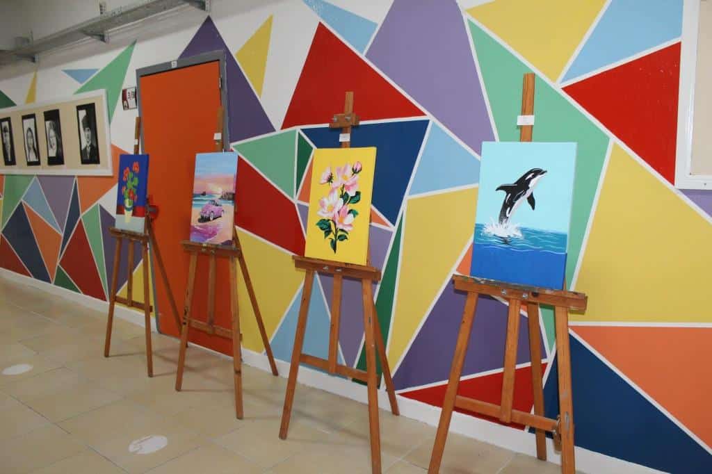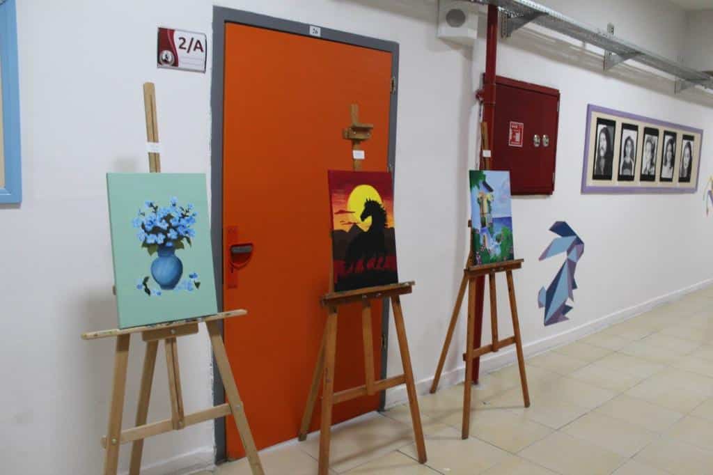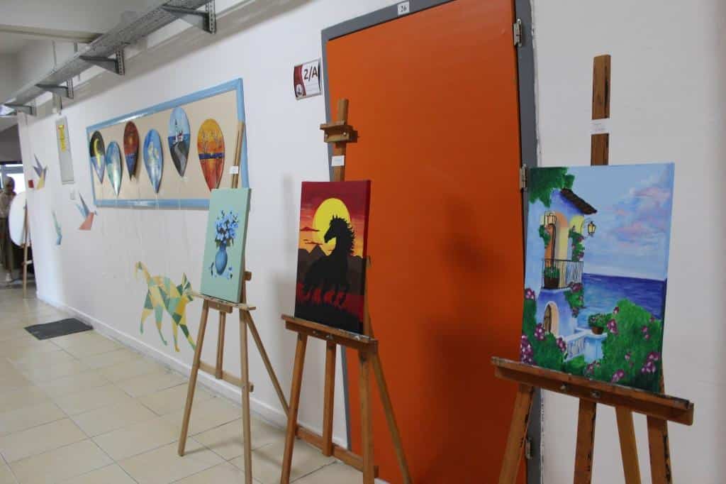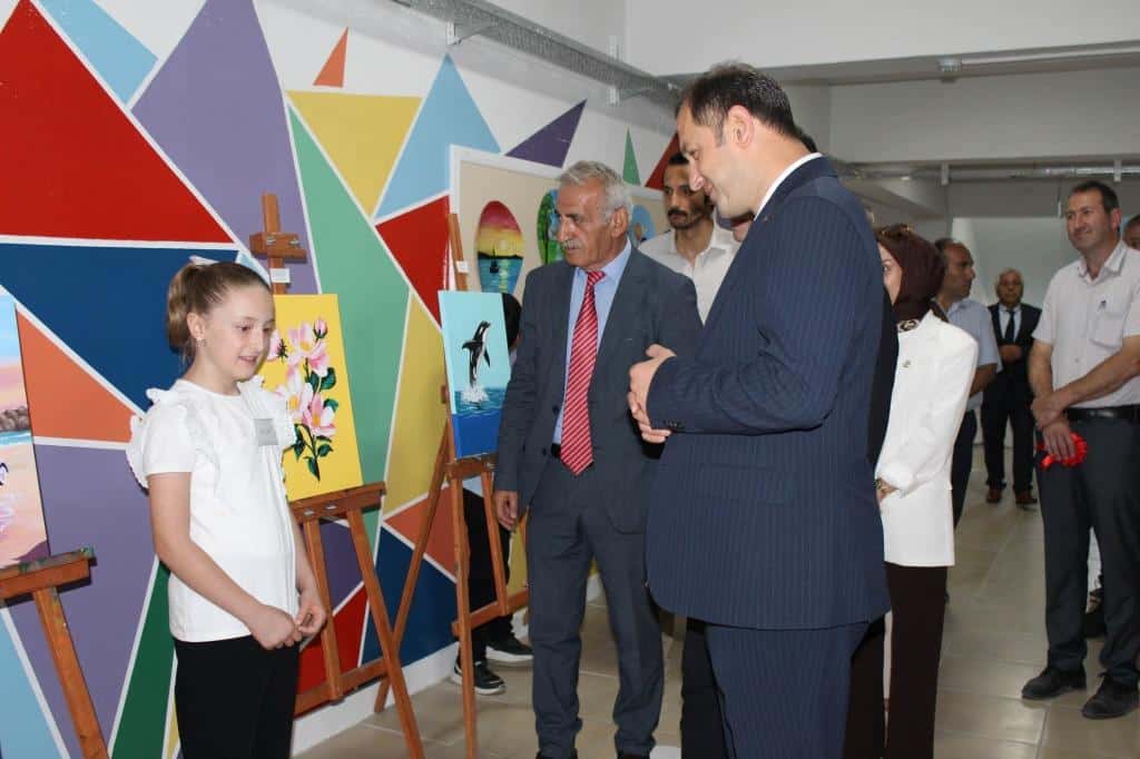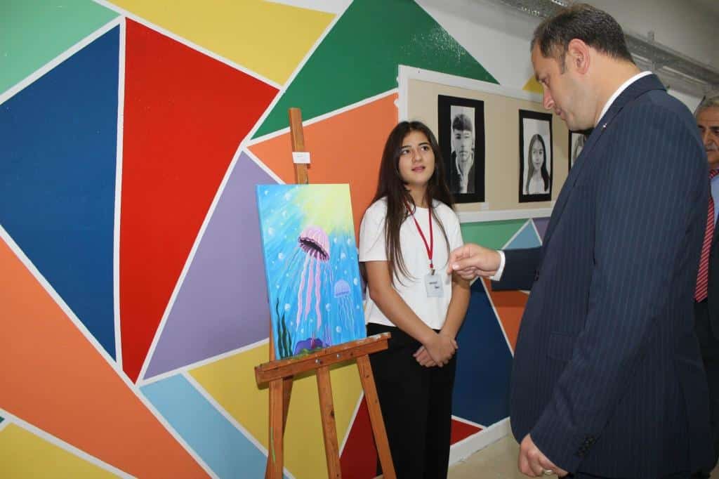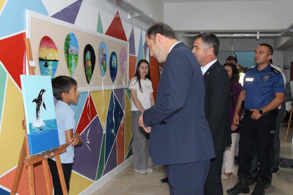 Yaz kurslarında yapılan çalışmaların sergilendiği resim sergisi yoğun ilgi gördü.